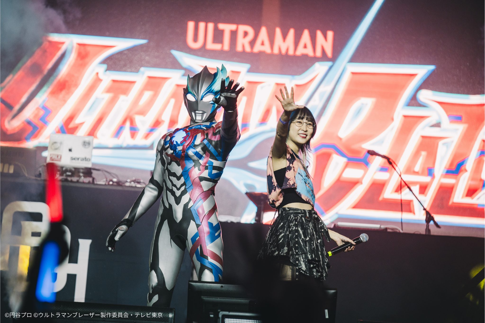 After a brief pause, the word “Ultraman” appeared on the screen, instantly stirring the crowd. MindaRyn returned to perform “BLACK STAR” (Ultraman Blazer), followed by an appearance from Ultraman Blazer himself, drawing cheers and excitement.